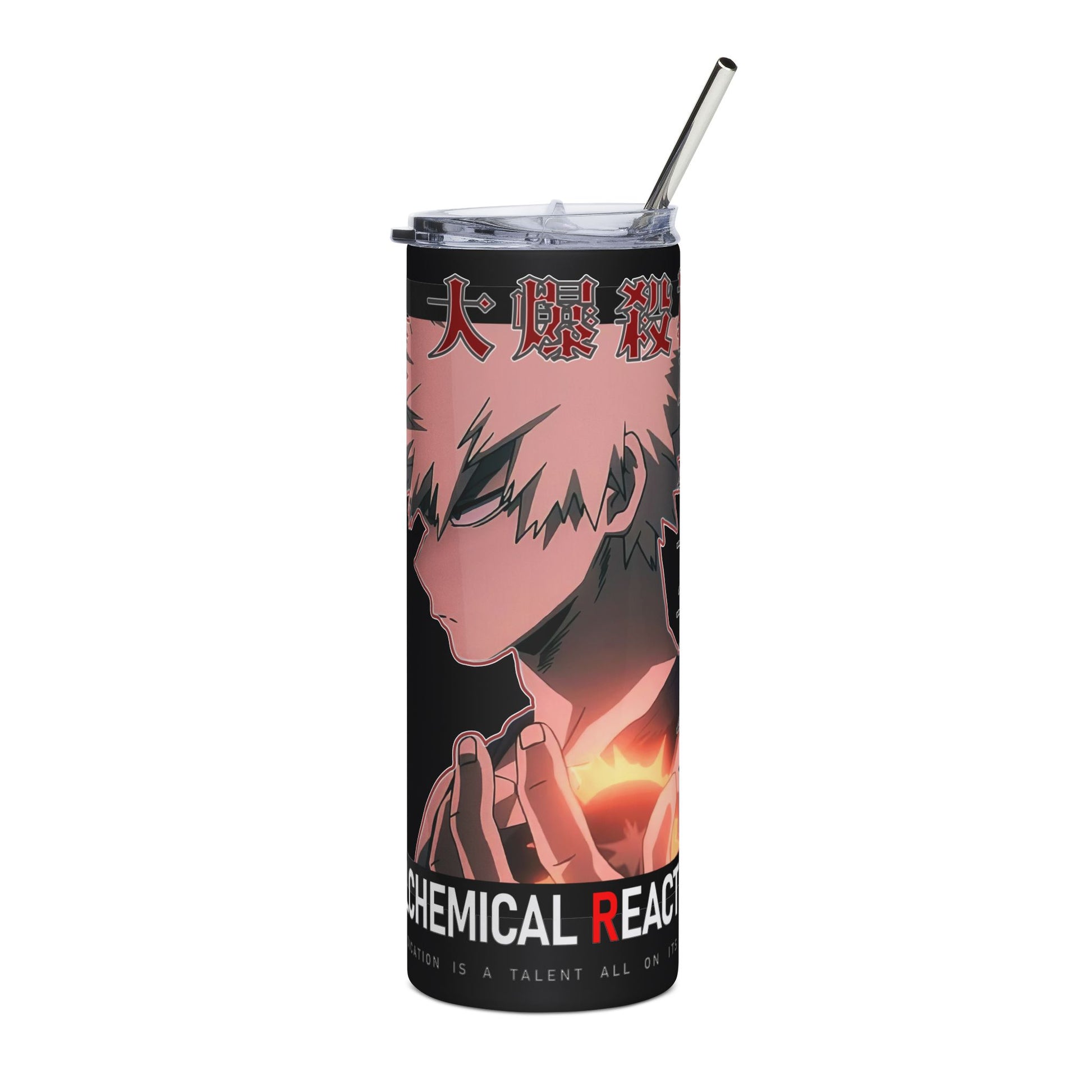 A slim 20 oz stainless steel tumbler that carries quiet intensity. The tall, cylindrical silhouette fits easily in most cup holders and feels sturdy in hand. The glossy varnish over the print brings depth to the moody, anime-inspired art while a clear lid and metal straw make sipping simple and reusable. It’s the kind of tumbler you reach for on late study nights, long commutes, or while sketching at a café — something that keeps your drink steady and your vibe on point.